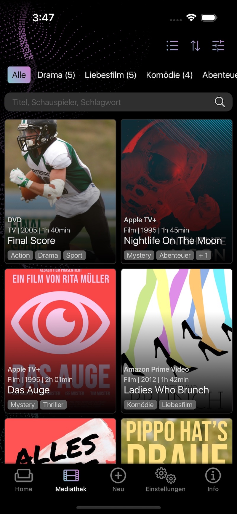 Durchforste Deine Sammlung. Entdecke den passenden Film mit den vielen Such- und Filteroptionen